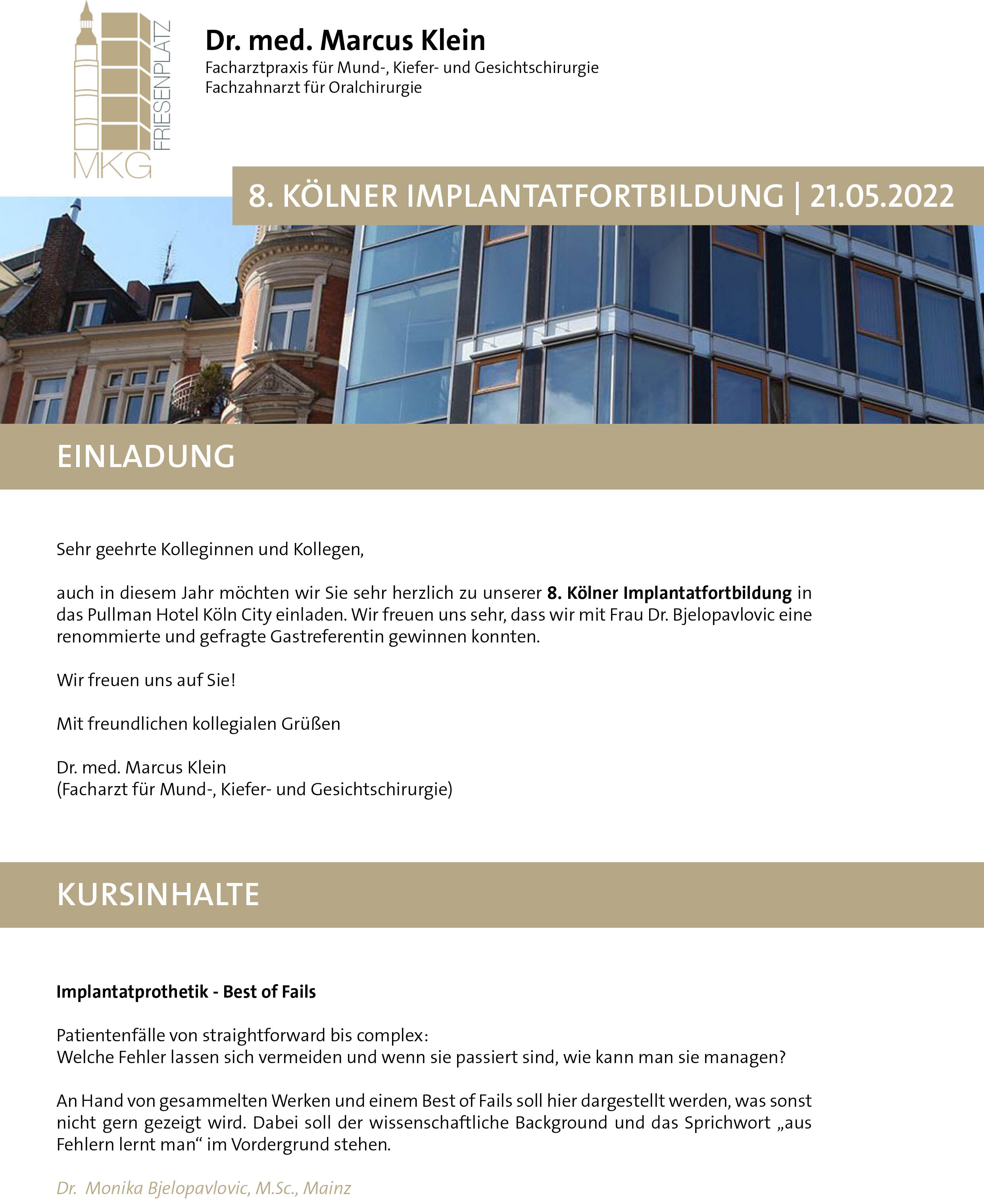 Die Facharztpraxis für Mund-, Kiefer- und Gesichtschirurgie am Friesenplatz bietet Patienten und überweisenden Kollegen aus Medizin und Zahnmedizin in Köln das komplette Leistungsspektrum der Mund-, Kiefer- und Gesichtschirurgie sowie Plastische und Ästhetische Operationen. Nach ausführlicher Beratung mit dem überweisenden Behandler und detaillierter Abstimmung der Behandlungsplanung wird die individuelle Therapie durchgeführt.